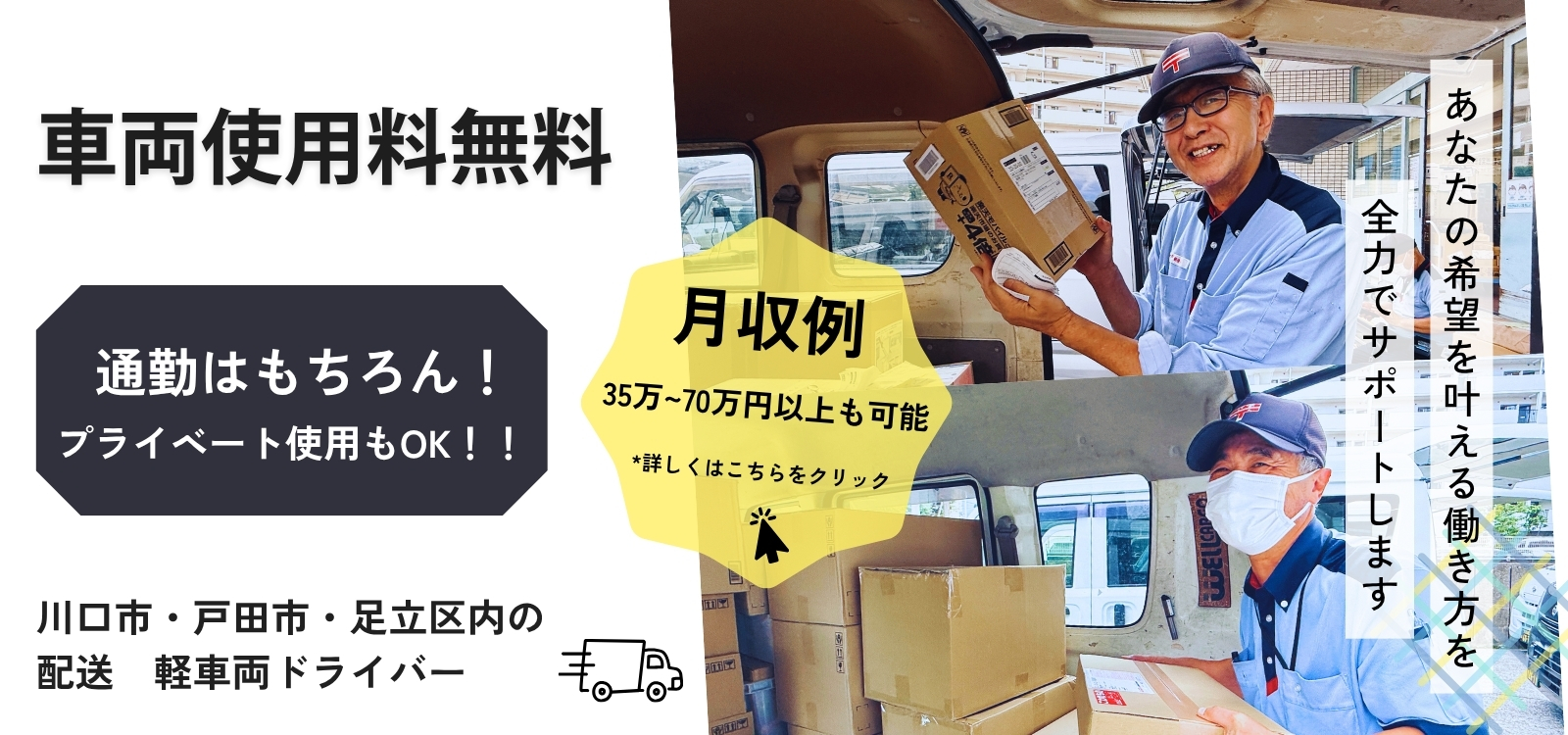 川口市・戸田市・足立区でのスポットチャーター 企業専属・宅配など軽車輌ドライバーの お仕事です。